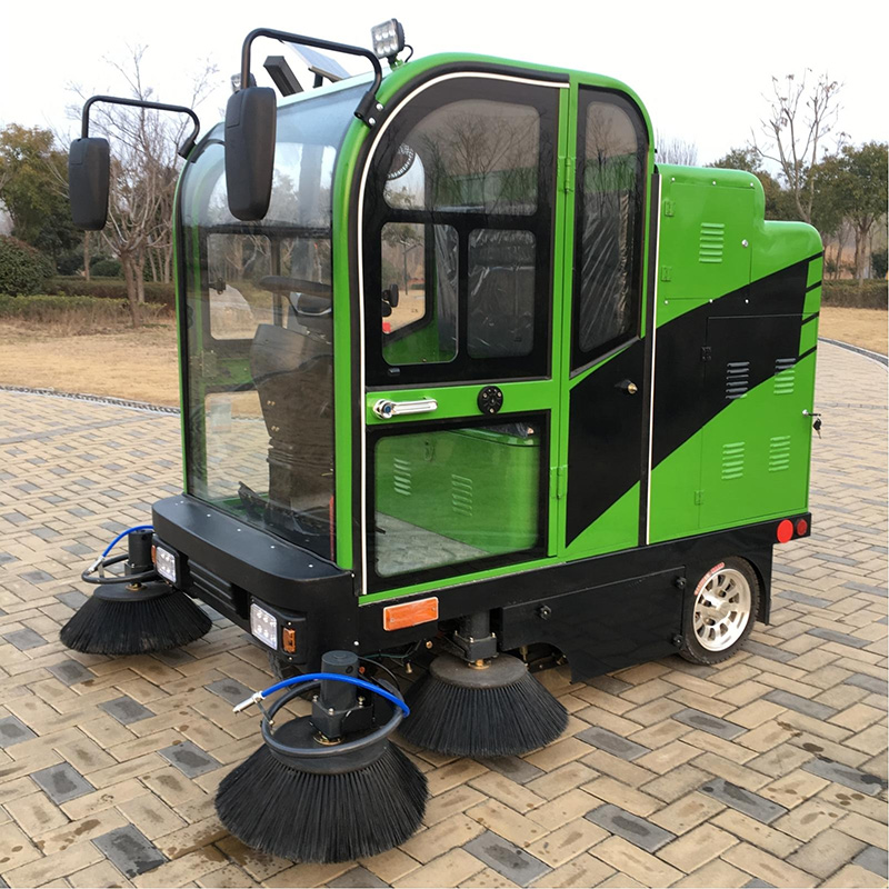 前后配有LED大灯及后尾灯,让夜晚清扫更明亮。内置倒车影像,让清扫更安全。大功率吸尘电机、加大滤芯、让清扫不扬尘,前置喷水装置,液压减震,前后实心防扎轮胎,